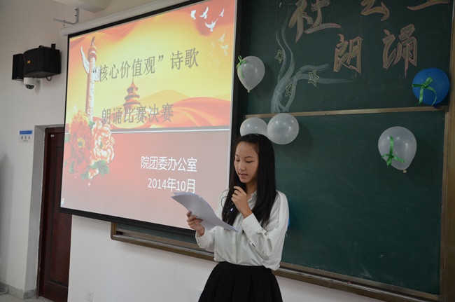 此次比赛不仅为学院爱好朗诵的同学提供了一个展示自我的平台,还在广大学生中掀起了学习“社会主义核心价值观”的热潮,有利于为学院学子树立起良好的精神风貌。