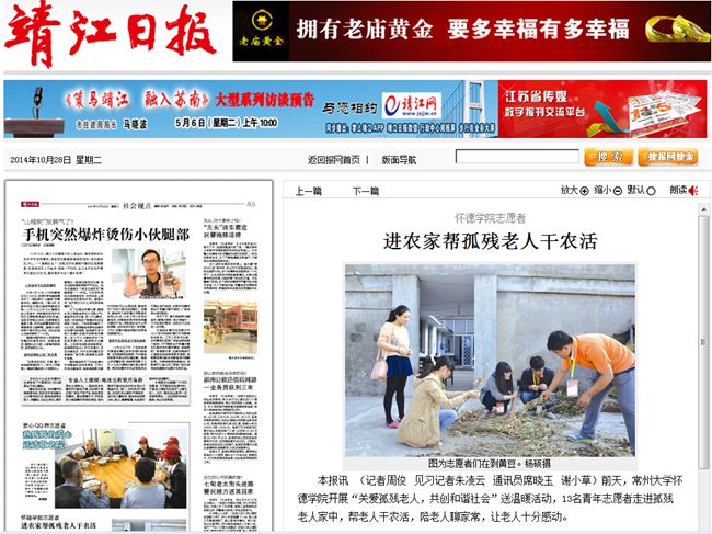 近日,怀德学院(靖江)青年志愿者们在校外指导员黄濛的带领下,早早来到斜桥镇安宁村开展了以“夕阳红—关爱孤残老人”为主题志愿服务活动。