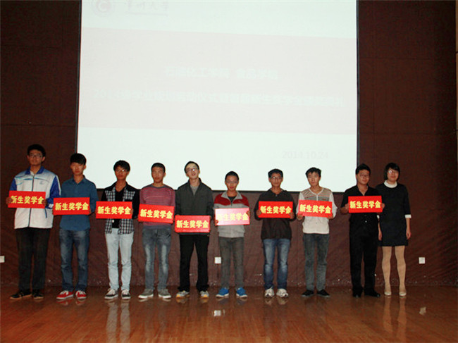 近日,石油化工学院食品学院在文彰楼报告厅举行2014首届新生奖学金颁奖典礼暨学业规划启动仪式。院党委书记王车礼、学生处副处长焦洁庆、学工办全体老师、新生班主任及2014级全体新生参加活动。院长助理宣慧主持典礼和启动仪式。