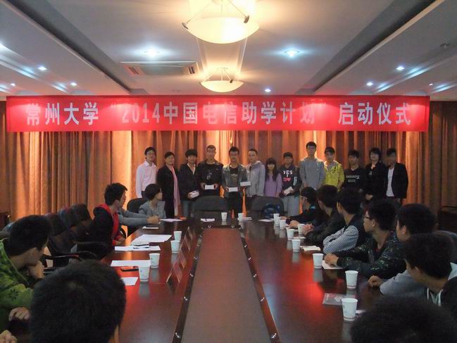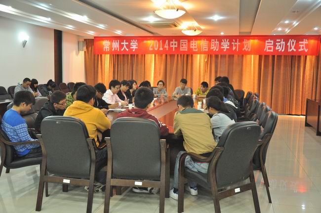 近日,常州大学“2014中国电信助学计划启动仪式” 暨“人生新旅途 工会伴我行”困难学生座谈会在我校文彬楼第七会议室举行。中国电信常州分公司代表、校工会副主席徐萍、学生处副处长焦洁庆及28位受助学生代表参加了仪式和座谈会。