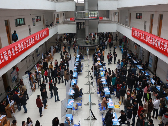 11月29日,由常州大学就业指导中心、机械工程学院、城市轨道交通学院联合举办的“常州大学2015届毕业生机械、电气类专场招聘会”在武进校区教学辅楼大厅顺利举办。机械、轨道学院2015届本科、硕士毕业生参加了此次招聘会。学生处及学院负责人到场与用人单位和毕业生交流。就业指导中心老师和学院辅导员、部分专业教师也到场向用人单位推荐毕业生。
