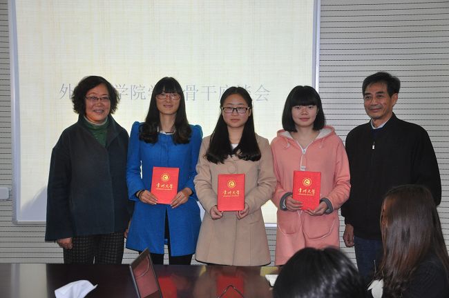近日,外国语学院学生干部工作指导会在主楼八楼会议室举行。会议邀请到关工委范嘉碧老师、王秋玲老师以及孟献民老师对学生干部工作进行指导。外国语学院党委副书记龙涌澜、学工办老师老师及学生干部代表参加了本次座谈。