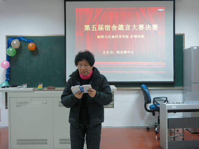 近日,制药与生命科学学院宿舍箴言大赛决赛于敏行楼316举行。经过层层角逐,学院有8组宿舍进入此次决赛。关工委徐璇、周军红、孙玉华,后管处支骏敏老师及学院老师参加活动并担任评委。