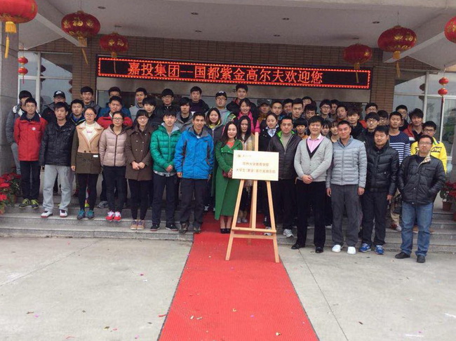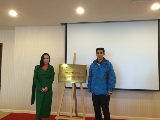 近日,体育学院大学生(紫金)高尔夫俱乐部在体育学院实践教学基地紫金高尔夫成立,体育学院副院长董伦红、常州紫金高尔夫会所总经理崔傲雪出席成立仪式并为俱乐部揭牌,院学工、实验实训中心相关人员及教师代表、学生代表参加仪式。