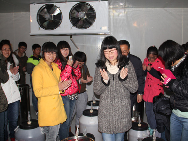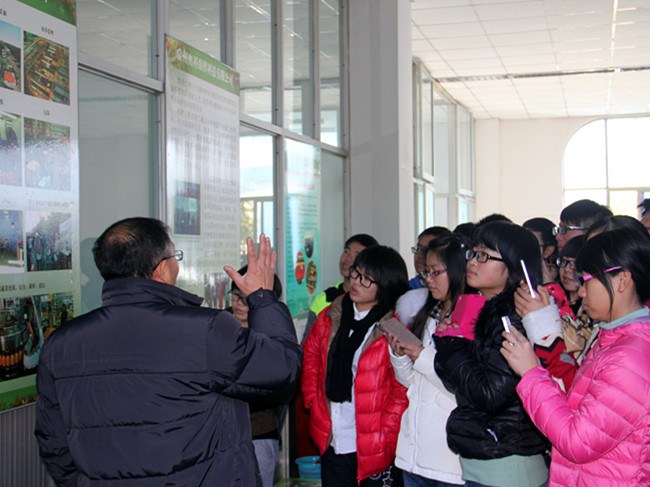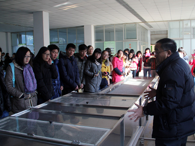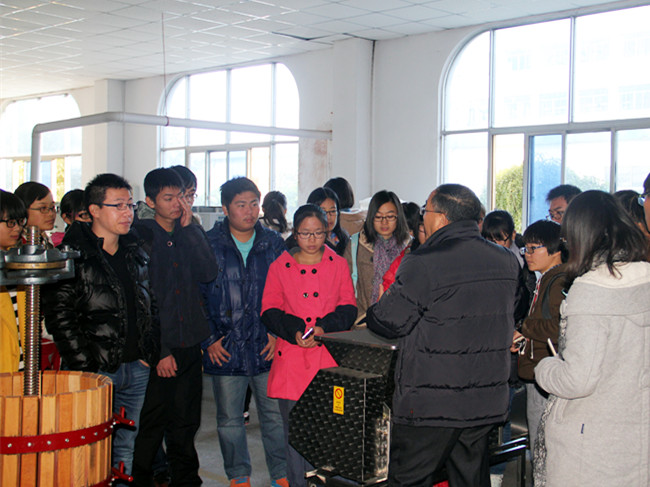 曾教授与同学们就水果蔬菜保鲜技术、食品质量与安全等问题进行了交流,同学们积极提问,对这一领域表现出了浓厚的兴趣。曾教授带领大家参观了葡萄酒的生产流程,讲解葡萄酒的分类、特点、生产工艺,了解葡萄酒的酿造及包装工艺流程,他着重强调葡萄酒的生产要从源头抓起,进行过程控制,切实保证质量与安全。