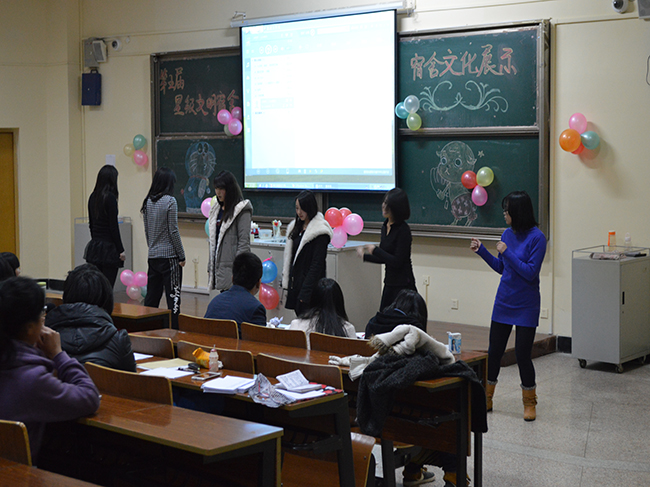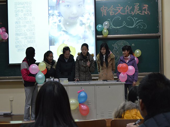 综合展示由PPT演示、手工艺品展示和才艺表演三个环节组成。在PPT展示过程中,各宿舍代表精心设计准备的ppt精美幽默,创意无限;手工艺品新颖出奇,各具特色;才艺表演中更展现出各宿舍成员独特的一面,或表演小品,或唱歌跳舞,将活动推向了高潮,赢得了在场观众的阵阵掌声。
