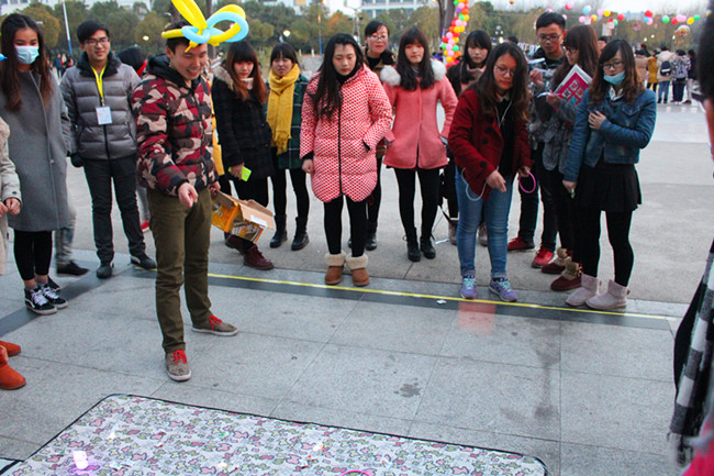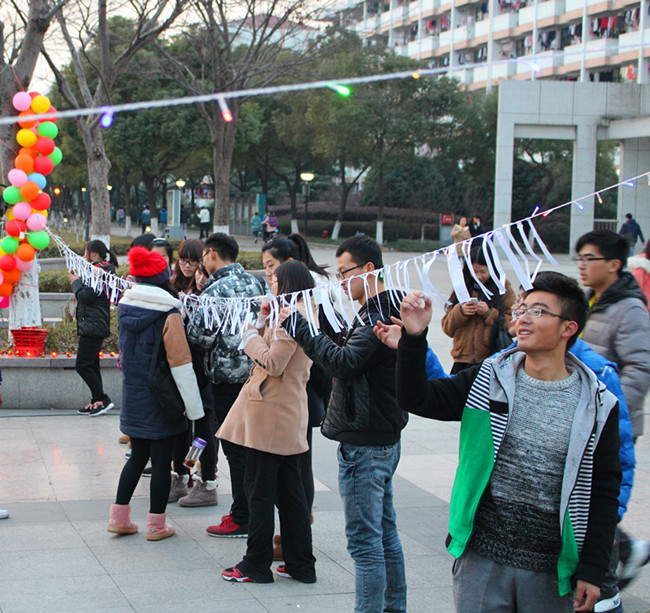 为弘扬传承中华民族文化,丰富学生的课余文化生活,12月26日下午,艺术学院学生会以“炫动元旦,璀璨艺灯”为主题在水月广场开展了猜灯谜、迎元旦活动。本次活动以猜灯谜为主轴,同时贯穿了赏灯、套环、乌龟慢递、许望墙等趣味项目,现场色彩纷呈、热闹非凡。