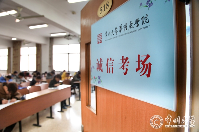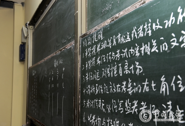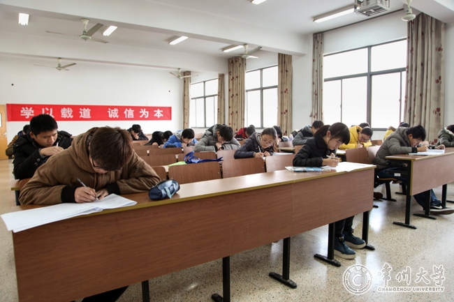 有一个考场很特殊,没有监考老师,没有提前安排座位,全凭自觉。在这个特殊的考场上,与其说是知识的考试,不如说是人品的考量。“秉承责任校训 弘扬优良学风”、“学以载道 诚信为本”的那抹鲜红照亮了考生们心底的那份坚守。