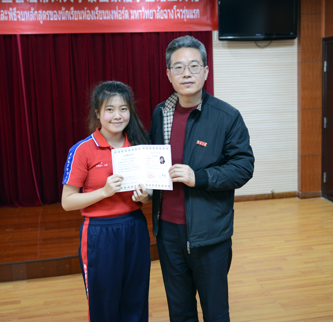 史国栋书记为泰国同学代表颁发了结业证书,并赠送了学习纪念品。泰国学生们用流利的汉语汇报了自己的学习成果,表演了中国太极、中文歌曲等精彩节目。