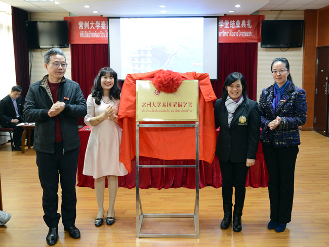 泰国驻沪总领馆、常州大学、泰国蒙福学校三方领导共同为常州大学泰国蒙福学堂揭牌;中泰双方同时举行了“常州大学•泰国清迈蒙福学校汉语教学研讨会”。 (编辑 郁涛)