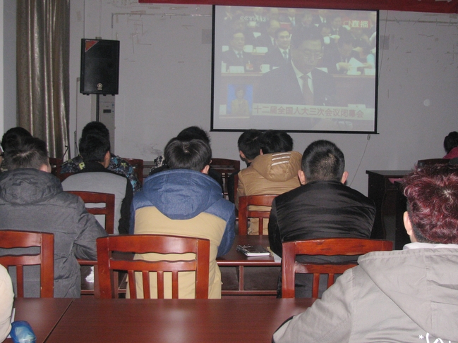 上午9点整,两会闭幕时正式开始,伴随着央视主持人和嘉宾的解读,全体同学观看了闭幕式各项议程。整个过程,大家都在认真观看会议现场的直播,更有同学时不时低下头来做些笔记。在全国人大常委会委员长张德江通知致闭幕词结束后,同学们便以小组为单位展开了讨论。各班级、社团干部纷纷上台阐述自己的感想和收获。有的同学就“任性不可有,韧性要充足”这句话,提出了自己独特的看法和见解,赢得了在场同学的热烈掌声;有的同学对“四个全面”的提出表达了自己的想法;有的同学表达了对深化改革后老百姓会过上更好的日子的美好期盼……大家畅所欲言,整个讨论过程气氛热烈。