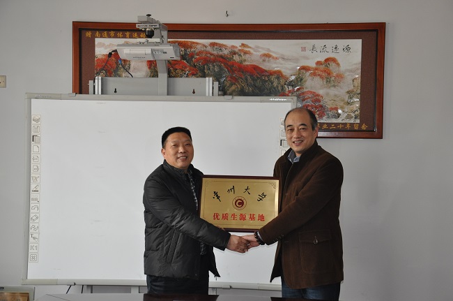 党总支书记李荣代表学校向任学明校长赠送“常州大学优秀生源基地”匾额。