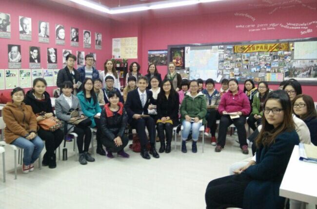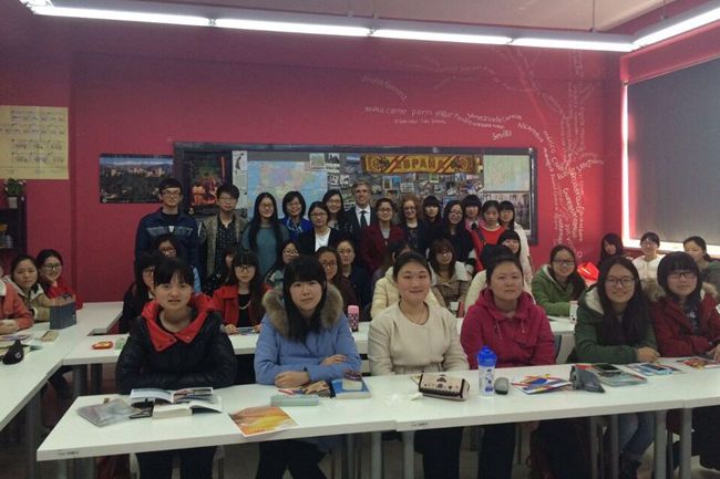 西班牙驻华使馆教育处教育顾问安赫尔· 桑德玛利亚 ·巴尔诺拉先生与学生交流