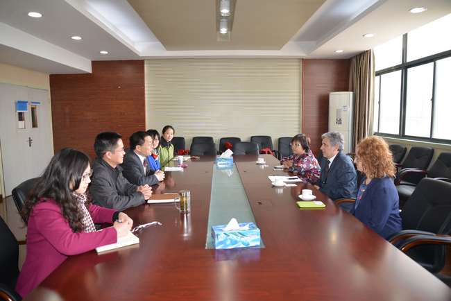 3月25日,西班牙驻华使馆教育处教育顾问安赫尔· 桑德玛利亚 ·巴尔诺拉先生与杨军女士来访。安赫尔先生在西语专业文化教室给学生们做了精彩讲座,介绍了西班牙历史文化、优势产业、高新科技以及西班牙大学在各地区的分布以及适合中国学生学习的本科、研究生专业等,并回答了学生提出的关于留学的问题。整个过程气氛活跃,学生们对留学西班牙有了进一步的了解。在与学院相关负责人和老师的沟通中,安赫尔先生表示会尽力支持常州大学西班牙语专业的建设,双方就与西班牙大学合作办学、西班牙语外教聘用、学生就业实习等事项进行了深入会谈。