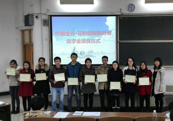 25日上午,邀请到昆山花桥组织人事局到校举行专场招聘。招聘会前,昆山花桥国际商务城人力资源公司副总经理耿晓璇代表花桥组织人事局向我校十名同学颁发了“中国金谷·花桥国际商务城奖学金”。招聘会共有九家企业参加,提供就业岗位384个,吸引了商学院、周有光语言文化学院、信息学院数理学院等学院的众多毕业生参加。