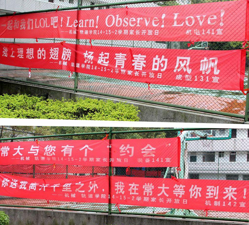 “各路巾帼好汉相聚首,我们只论子女不论江湖。”、“谢天谢地,爸妈来了!”、“一起LOL吧!Learn!Observe!Love!”、“你送我离开千里之外,我在常大等你到来!”……,4月3日,常大校园内别样的“横幅汇”吸引了众多的关注。“大学也开家长会!”的消息成为了近日白云校区师生讨论的热点话题。