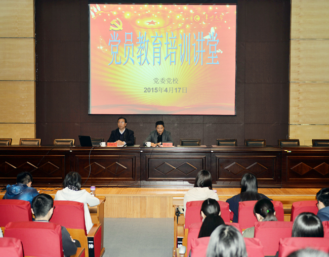 4月17日下午,学校党委党校在文彰楼报告厅举行学生党员培训班开班仪式暨四个全面治国理政的战略布局首场报告会,图书馆馆长丁恒龙教授应邀为培训学员作首场报告。党委组织部部长、统战部部长、党校常务副校长张德高出席开班式并讲话。