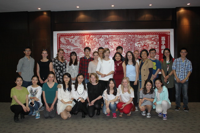 5月6日,荷兰方蒂斯大学创意产业学院师生代表团11人访问我校,在学校志愿者带领下参观校园和常州非物质文化遗产展览馆,品尝中国美食,与我校学生进行交流。