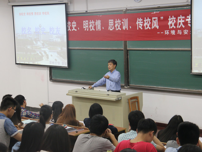 5月8日,时值校庆37周年来临前夕,环境学院党委、关工委特邀校离退办主任、工会副主席袁能来院作“知校史、明校情、思校训、传校风”校庆专题讲座。环境学院党委副书记吕琳华及学工办老师出席报告会,学院全体学生骨干聆听了报告。