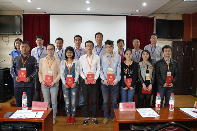 评议老师根据汇报同学的选题、工作量、表达逻辑与规范评选出了一等奖2名、二等奖3名,三等奖3名。滕帆和欧洁两位同学获得一等奖,万毅、刘婷婷和陈利娟获得二等奖,尹渠、赵中胤和杨振东获得三等奖。何明阳院长、王车礼书记、钟璟副院长分别为获奖的同学们颁发荣誉证书。参加论坛的评议老师与汇报同学合影留念。