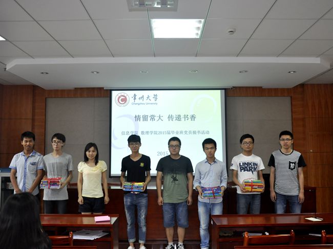 回馈母校,爱心传承。又是一届毕业生离校之际,为表达自己的爱校之情,又为发挥党员先锋模范的作用,近日,在信息学院数理学院知行学社的倡议下开展主题为“情留常大,传递书香”2015届毕业生党员捐书活动。