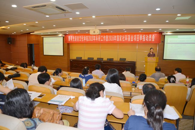 7月17日上午,周有光语言文化学院在图书馆报告厅召开2015年科研工作推进会暨2016年国家社科申报动员会。会议由副院长孔文主持,副校长芮国强、人文社科处副处长葛彦东出席会议,学院领导和全体教职员工参加了会议。