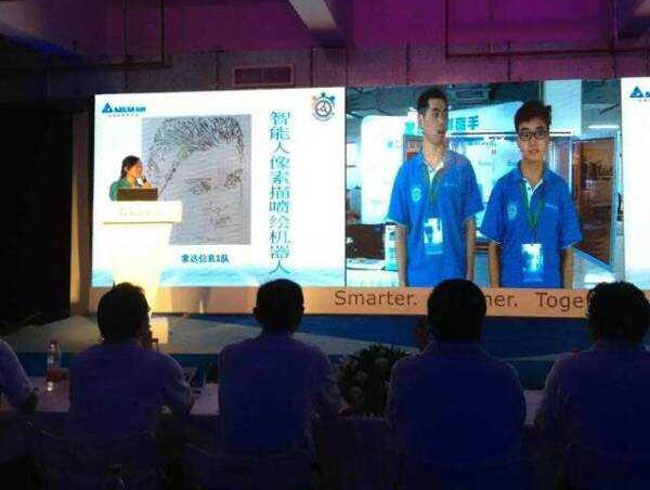 7月30日,第二届台达杯两岸高校自动化设计大赛经过2天紧张激烈的角逐在江苏省苏州市台达吴江生产基地顺利落下帷幕。常州大学首次组队参赛就获得佳绩,由信息学院陈岚萍老师指导,周文涛、邓开贵、封晓鸣三位同学组成的“常达信息1队”的“智能人像素描喷绘机器人”项目荣获本届大赛一等奖及最佳人气奖。