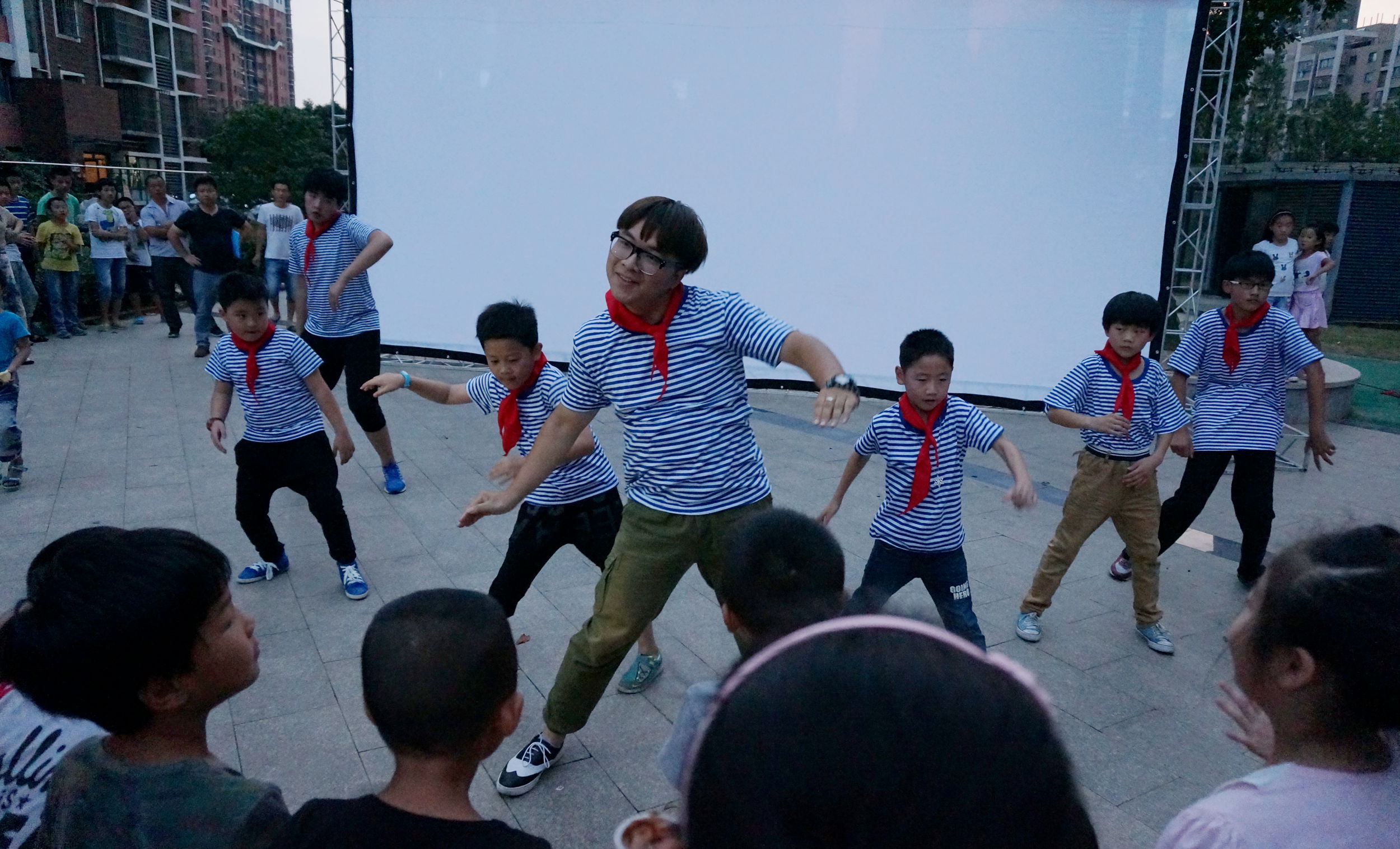 红领巾,海魂衫,国防绿;拉丁,hip-hop,爵士舞。近日,新北区龙虎塘街道祥龙社区露天电影播放间隙多了一场来自常州大学机械工程学院城市轨道交通学院的快闪Show。