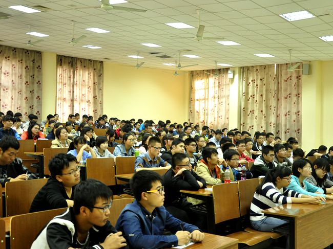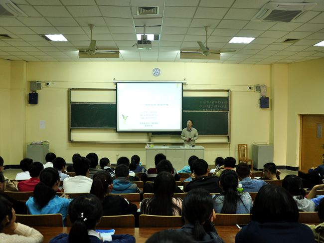 储志新副书记从“顶天立地,拒绝平庸”入题,围绕大学功能、大学精神、大学学业以及生涯规划四个方面进行了讲解;重点针对新生入学后存在的困惑,提出了相应的解决对策;从学习、生活、健康、消费、情感、网络、工作等七个模块详细介绍了大学生活的特点及学习方法,并就如何合理使用网络资源,人际关系的处理技巧,工作和学习的关系等问题与现场同学进行了交流。