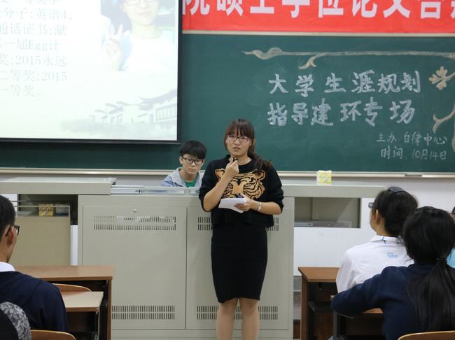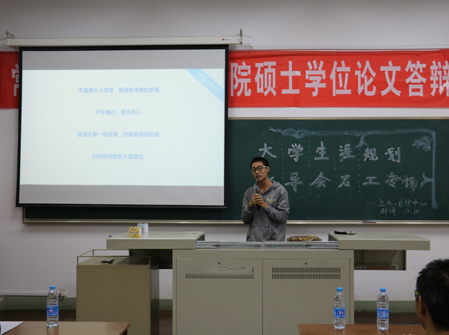 此次生涯规划指导会邀请到13、14级的优秀同学参加,他们分别在学业规划、学习方法、学生干部工作、科技创新等方面取得了优异的成绩。交流指导会以集中的方式展开,学长学姐们分享了自己的大学生活、人生感悟,同时也讲述相关专业知识、学习技巧、就业前景,并通过问答的形式为新生进行大学生涯指导。