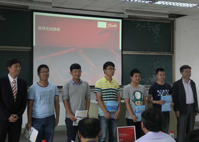石油工程学院王树立院长致欢迎词,对中国制冷学会和丹佛斯公司一行的到来表示热烈欢迎。中国制冷学会副秘书长荆华乾作为本次“中国校园行”的宣讲嘉宾发表讲话,他讲述了“中国校园行”活动的目的及意义,并对活动充满期待。丹佛斯中国市场总监肖伦对公司的历史、规模、产品分类以及涉及的领域这几方面为大家进行详细的介绍,同时重点讲述了“Danfoss Learning”这一免费在线学习平台,希望师生能够登录平台自主学习。中国制冷学会会员部工程师高恩元现场师生介绍了中国制冷学会的发展历史。在现场互动环节,中国制冷学会及丹佛斯公司领导还向获奖的同学们颁发书籍和书包进行奖励。