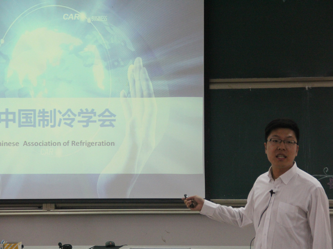 为推进中国制冷及暖通空调行业的教育,提升从业人员的专业水平及竞争力,推广免费在线学习平台,10月20日,中国制冷学会&丹佛斯“中国校园行”活动来到我校进行宣讲,宣讲会在白云校区南五阶举行。中国制冷学会副秘书长荆华乾、丹佛斯公司中国市场总监肖伦、中国制冷学会会员部工程师高恩元,石油工程学院领导、建环专业与能源专业师生参加活动。