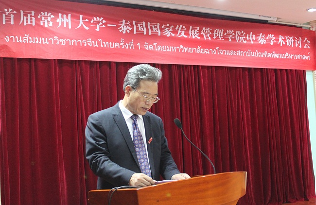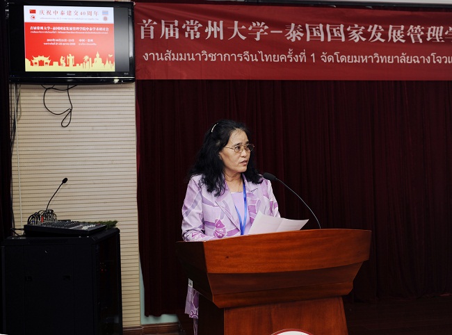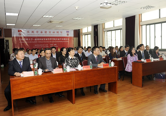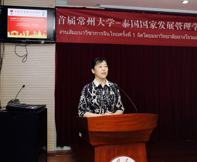 10月22日,由常州大学、泰国国家发展管理学院联合主办的首届中泰学术研讨会在常州大学举行。泰国国家发展管理学院、泰国大城皇家大学、泰国清莱皇家大学、泰国清迈蒙福学校和中国北京大学、云南大学和常州大学的近40位专家学者齐聚一堂,就中泰友好合作40年、“一带一路”发展理念下中泰双边合作前景、中泰创新创业、中泰教育文化合作交流等议题深入研讨。泰国国家发展管理学院副院长金达娜、泰国大城皇家大学副校长塔德利、泰国清莱皇家大学人文学院副院长番秀英、泰国清迈蒙福学校副校长葛甘达、常州社科联副主席叶英姿,常州大学党委书记史国栋、校长浦玉忠等出席研讨会。宣传部、人文社科处、商学院、国际交流处、国际教育交流学院相关负责人参加了研讨会。泰国驻上海总领馆总领事巴丽彩为研讨会发来贺信。