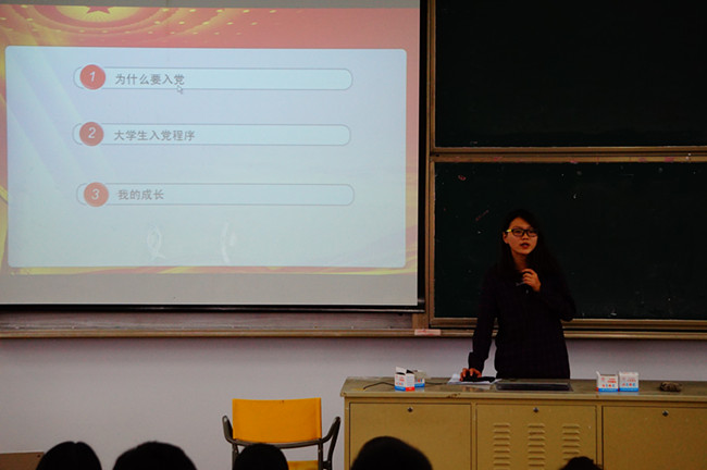 王老师从共产党诞生,发展历程,性质,最终目标与现阶段任务几个方面出发,将一幅较为清晰的共产党轮廓展示在我们面前。就“为什么入党”的问题,王老师从几个方面给予的解答:①党需要青年;②青年需要党;③青年离不开党的培养;④加入党有利于青年的发展。同时王老师指出,入党是积极追求个人进步的体现,我们应以为党做贡献为信仰而入党,成为社会需要的负责青年。王老师还系统地阐述了入党条件,党的方针与原则,入党基本程序等入党须知。最后,几位优秀的学长学姐以自己的亲身经历说明了入党的重要性,鼓励大家要把握时光,努力学习,热爱集体,争取早日入党。