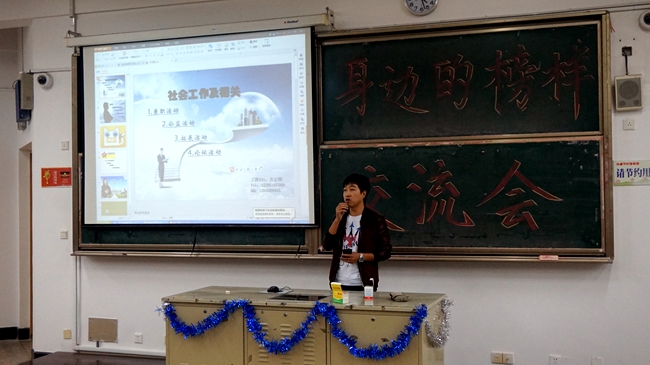 为了让新生更快融入大学生活,10月23日下午,由商学院学习部主办的“身边的榜样”交流会在w16阶顺利举行。