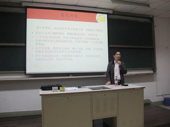 会上,陆先亮老师为同学们进行了“信仰与道路”为主题的专题讲座,向同学们列举当前社会信仰缺失的一些案例,并展示了信仰的不同表现形式,引出当代大学生应树立崇高远大的共产主义信仰。重点讲解了党的基本理论、党的基本知识、党的发展历史,让同学们对中国共产党有了全面深入的了解。强调了大学生入党动机的问题,要求同学们端正入党动机,既要在组织上入党,更要在精神上入党。
