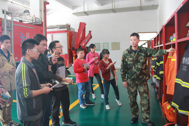 2015年11月5日下午,为大力普及消防安全常识,进一步提高我校学生消防安全意识和自防自救能力,保卫处组织校大学生安全协会20余名学生代表赴武进消防大队进行参观学习。