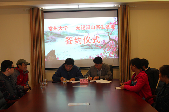 在挂牌仪式上,阳山写生培训基地总经理傅洪根对常州大学艺术学院的到访表示欢迎,详细介绍了基地的住宿条件、伙食搭配、基础设施、配套服务;李宪锋副院长对基地的运营模式和服务质量表示了充分肯定,就进一步深化写生基地合作模式、扩展实习内容等进行了深入沟通;双方共同签订了《常州大学校外实习基地协议书》。