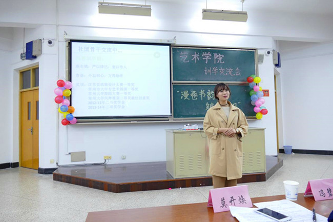 为帮助新生明确奋斗目标与努力方向,提升自我规划意识与执行能力,艺术学院以“漫卷书韵,皴染艺风”为主题,通过一周一学、一周一讲的方式与手段,邀请优秀学长学姐与新生展开面对面交流、互动。近日,一周一学之“训学”在W18阶召开,活动邀请到了校学生会主席冯碧琪、校D8工作室负责人莫开焕、院学生会主席邵帅帅、院就创中心主任曹凡担任主讲人,学院各学生组织负责人及全体学生干事参加交流。