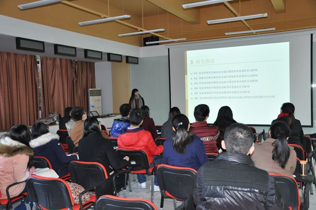 交流会分为两组同时进行,商学院钟昌宝、王文华、张普、彭伟和徐光伟等五位老师以及钱玺娇、曹倩、王士伟、毛伟和蒋雪等五位研究生将各自最新的学术论文进行了汇报,报告内容涉及公司治理与公司财务、企业信息化、财务风险管理、物流与供应链管理、金融工程、低碳经济、能源利用管理与政策分析、创业与创新管理等多个研究方向。与会研究生积极发言,围绕报告内容和方法相互交流,现场气氛活跃。