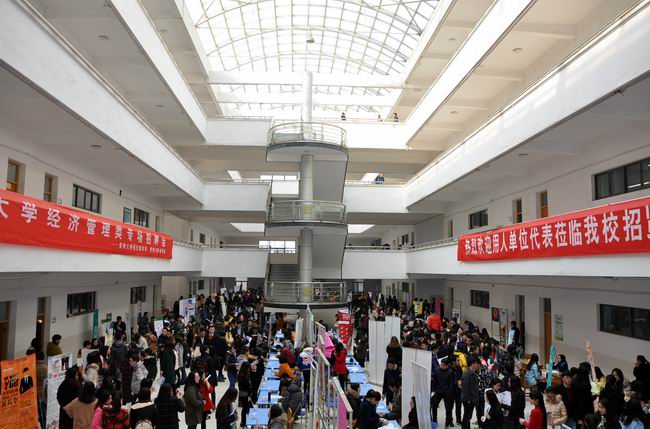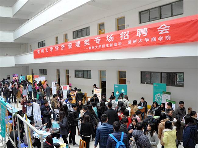 11月28日上午,由常州大学就业指导中心、商学院联合举办的“常州大学2016届毕业生经济管理类专场校园公益招聘会”在武进校区教学辅楼大厅顺利举行。商学院2016届本科、硕士毕业生参加了此次招聘会。学生工作处副处长周晓东,商学院院长张宏如、党委副书记陈曙钧和各专业负责人到场并与用人单位和毕业生进行了深入交流,就业指导中心老师和学院辅导员老师现场了解企业需求并向用人单位推荐毕业生。