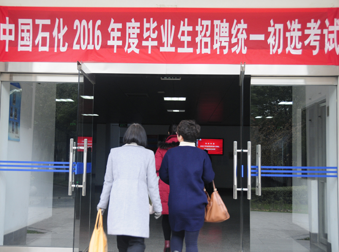 12月5日下午,中国石化2016年毕业生招聘统一初选考试在我校武进校区举行,来自不同高校的近600名学生参加了本次考试。学生处、信息中心负责人到考试现场检查指导工作。