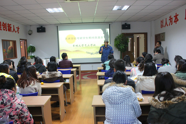 12月10日下午,艺术学院“考研学生慰问交流会”在文彰楼402举行。艺术学院党委书记周霞、副院长黄海波、党委副书记蒋伟中及辅导员老师与2012级考研学生参加本次慰问交流会。
