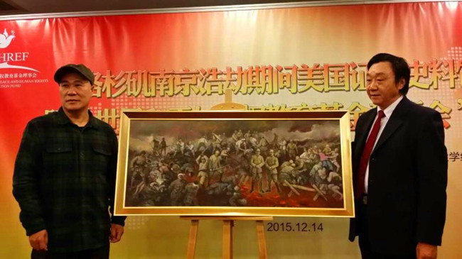 会议期间,由我国著名军事题材画家、常州大学艺术学院迟连城教授创作的油画《南京大屠杀》被洛杉矶南京浩劫期间美国证人史料馆永久收藏,朱成山馆长向迟连城教授颁发了收藏证书。据悉,洛杉矶南京浩劫期间美国证人史料馆是我国在美国创立的第一座专题馆,今后陆续将在加拿大、韩国等国建立相关内容主题馆。(编辑 郁涛)