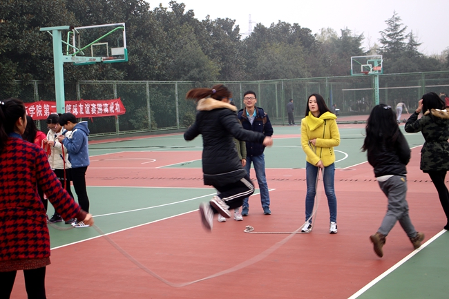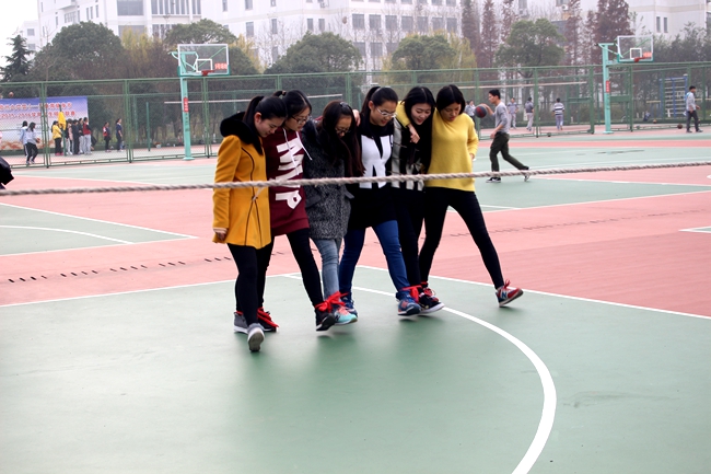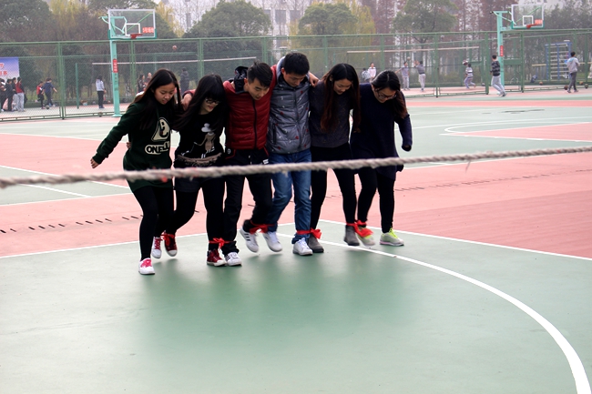 本次活动的主题是合作、竞争和挑战。比赛以班级为单位采用计时规则,具体内容分为三项:趣味接力赛、跳大绳、六人七足障碍跑和猜拳争地盘。虽然比赛过程中,天公不作美,连续两天下雨,但在商院团委学生会各部门之间默契配合、积极组织下,整个竞赛气氛激烈又不失轻松愉快,参赛同学们尽力完成每一项项目,全身心的投入在比赛中,围观同学不时发出欢快的笑语,同学们将青春的光芒发挥到极致,充分感受到团队合作的魅力。比赛最后,信管151 摘得桂冠,信管131、物流141 以及物流142 取得第二名,人力142、人力152、会计142 和国贸142分得第三名。