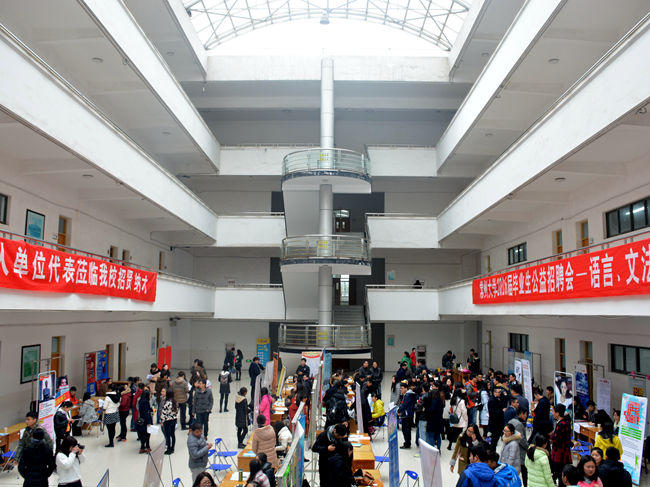 12月20日,由常州大学就业指导中心、周有光语言文化学院、史良法学院和体育学院联合主办的“常州大学2016届毕业生校园公益招聘会(语言、文法、体育类专场)”在教学辅楼大厅举办。周有光语言文化学院、史良法学院和体育学院2016届全体本科生参加了此次招聘会,学生处、周有光语言文化学院、史良法学院和体育学院的相关领导来到招聘现场与用人单位交流,并对应聘的学生给予全程指导。