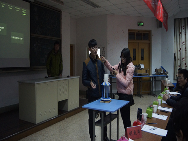 据了解,本次比赛的主题为有硬币分类装置及多功能推车设计两项。比赛中,参赛选手们依次上台,向评委老师及现场观众介绍了设计作品的技术路线,设计流程、结构框架、功能实现、创新优势及应用前景等。评委们认真地听取了各组的PPT汇报,仔细地查阅了各组的作品说明,并与参赛选手进行了充分的沟通与交流。评委老师也结合作品展示进行了现场提问。针对评委们的提问,参赛团队成员密切配合,进一步对自己的作品进行详细介绍,并针对作品的不足,提出了后续的改进思路。比赛现场气氛热烈,掌声频频。