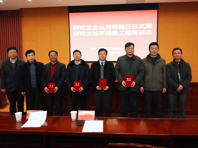 1月5日下午,机械工程学院 城市轨道交通学院研究生企业导师聘任仪式暨研究生培养质量工程推进会议在机械石油楼报告厅举行。中石化金陵石化公司副总工程师任名晨、江苏如石机械有限公司董事长刘志刚、江苏巨能机械有限公司董事长牟富君、江苏新纪元环保有限公司董事长丁南华、常州大学研究生部副主任王建华、学院领导班子以及学院全体研究生导师出席了会议。