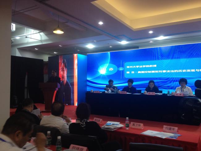 史良法学院赵赤教授以会议论文“美国控制腐败刑事法治的历史发展与核心启示”为题登台进行主题发言,发言获得点评专家及与会人员的热情关注和广泛好评。在论坛举办期间,赵赤教授还与部分专家学者进行了沟通。