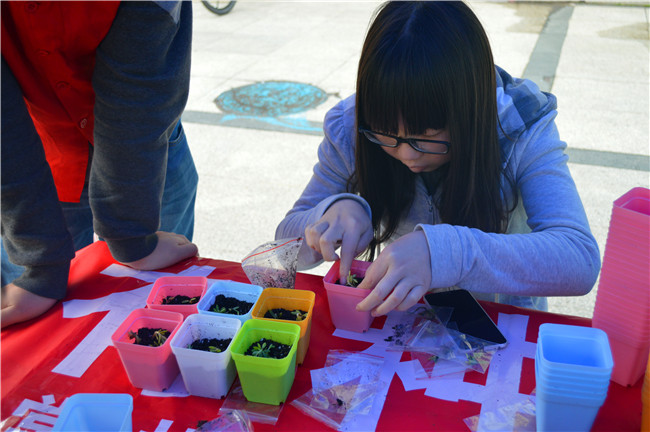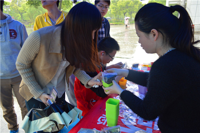 经过前期宣传之后,领养种子活动如期展开,虽然雨水淋漓,但丝毫没有对活动造成影响,发放种子的志愿者耐心的在现场等待同学们来领取。学生可通过现场报名,发布关于环保理念或环保宣言的微博,凭此微博领取种子;或者通过线上预约,扫描二维码进入相关界面,登陆并完善信息预定绿植。工作人员在发放种子后赠送一袋化肥并热心的指导如何有效的植养,认真相关问题,领取种子的同学满心欢喜的离开,带走希望,留下微笑。此次活动一直持续到下午三点才圆满结束。